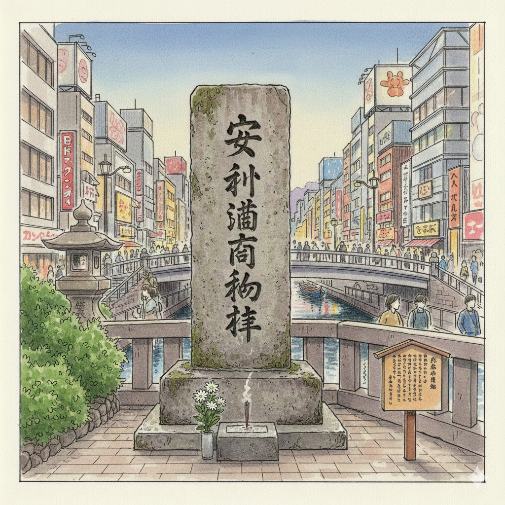 The hidden gem marking this origin is The Monument to Yasui Doton翁 (Yasui Doton-ō Hiko) at Nihonbashi Kitazume Higashi. Often overlooked by passersby, this quiet marker is the spiritual "origin point" of Dotonbori's entire commercial spirit. To pause here is to pay respect to its founder and take the first step toward a deeper understanding of this remarkable place.