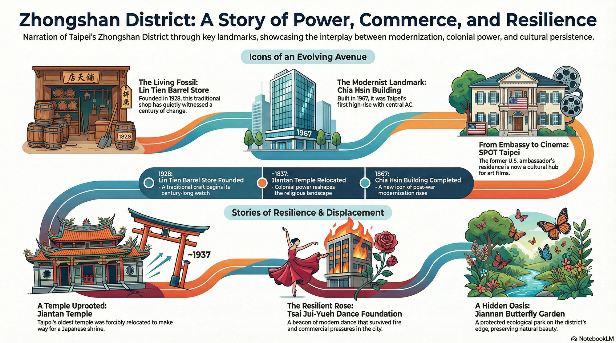 We often experience a modern city as a dazzling but anonymous collection of glass skyscrapers, rushing traffic, and bustling commercial streets. It’s easy to walk through a metropolis like Taipei and see only its vibrant, contemporary surface. But beneath this neon façade, etched into the very layout of its avenues and alleys, are profound stories of power, resilience, ambition, and memory. In a district like Zhongshan, the past isn't just a distant memory; it's a living presence, silently shaping the world we see today.