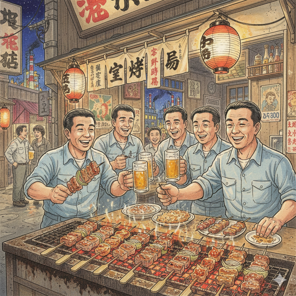 The pork on the skewers is a direct culinary legacy of the military's demand for leather boots during Japan's industrialization.