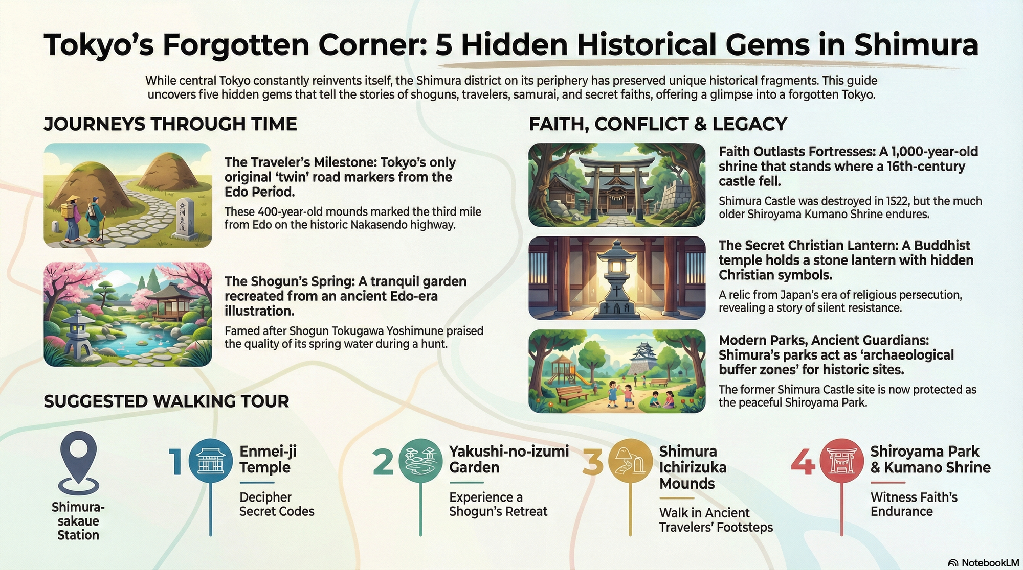 When we picture Tokyo, we imagine a dazzling metropolis of neon-drenched skyscrapers and futuristic bullet trains—a city perpetually erasing its past to build its future. But this image, while true, is incomplete. The city's deepest, most resonant stories are not always found in its bustling centers. Instead, they are preserved like amber in its quiet, peripheral neighborhoods, where the frantic pace of redevelopment has been gentler. The Shimura district in Itabashi Ward is one such time capsule, a place where the clamor of the modern city fades just enough for the past to speak. Hidden in plain sight among its parks, shrines, and residential streets are five surprising historical narratives that offer a profound new way to understand the soul of Tokyo.