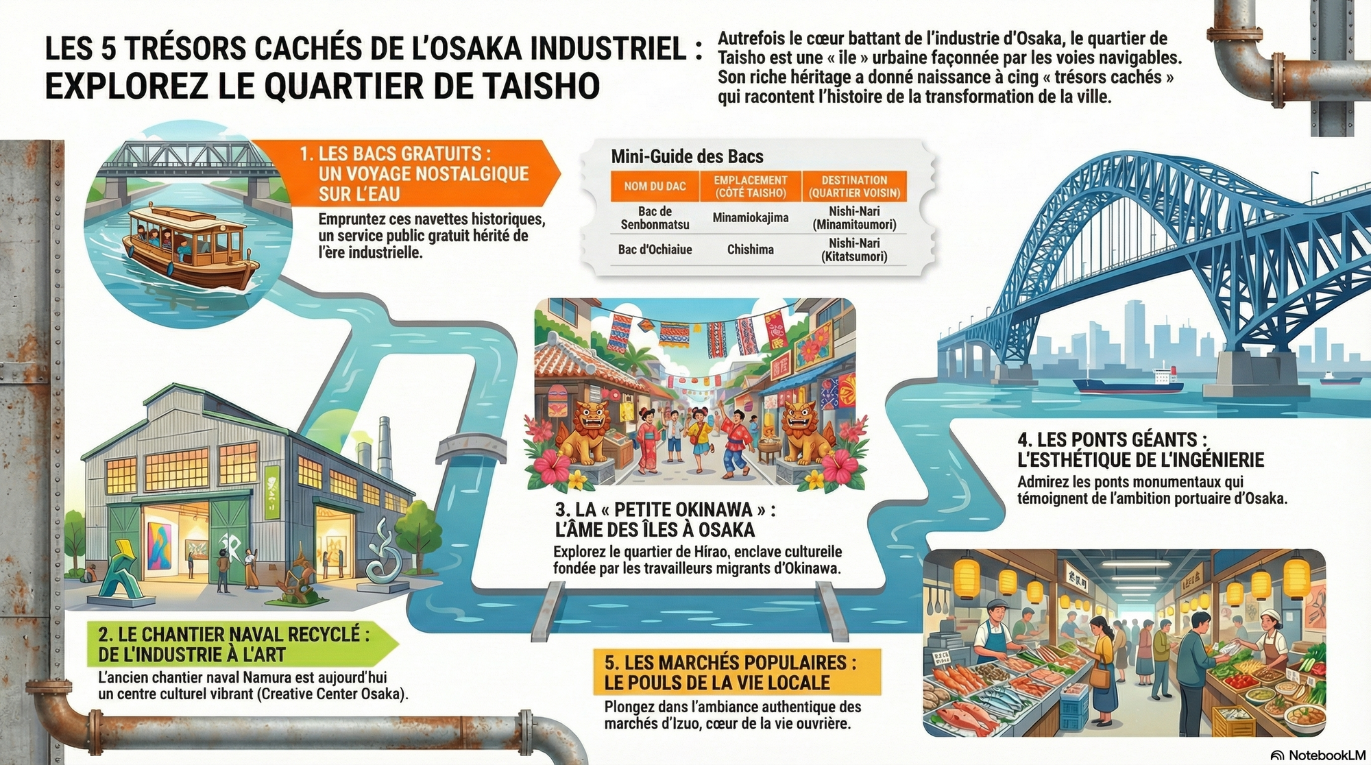 Les infrastructures d'une ville sont le récit de son ambition, le témoignage de sa lutte pour surmonter les contraintes de la nature. À Taisho, cette histoire s'écrit dans un dialogue spectaculaire entre des géants d'acier et de modestes embarcations.