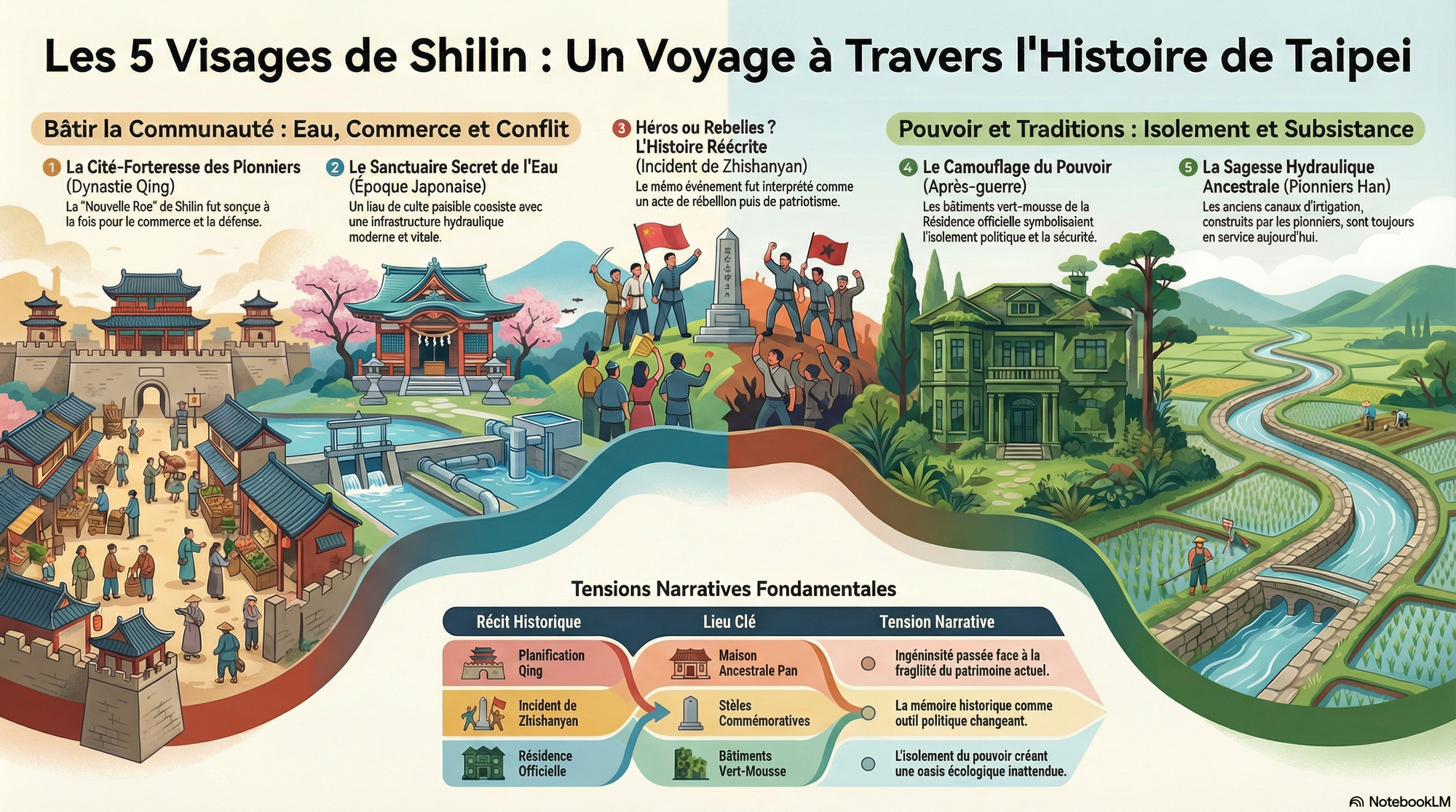 Lorsque l'on évoque le quartier de Shilin à Taipei, l'image qui vient immédiatement à l'esprit est celle de son célèbre marché de nuit, vibrant de saveurs et de foules animées. Pourtant, sous cette surface effervescente se cache un palimpseste historique d'une richesse insoupçonnée. Des stratégies de défense des premiers colons aux projets de modernisation de l'ère coloniale, des conflits identitaires sanglants à la solitude du pouvoir absolu, Shilin est un livre d'histoires surprenantes qui attendent d'être lues par ceux qui osent regarder au-delà des apparences.