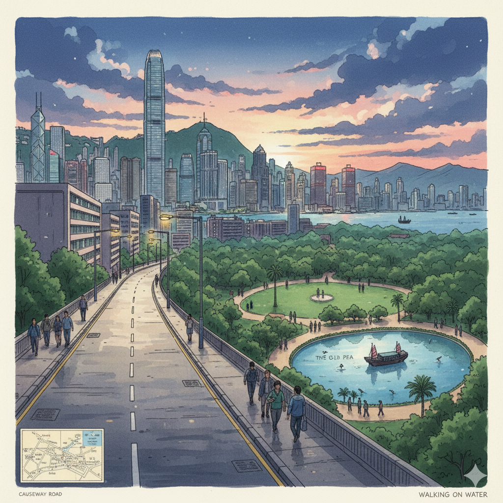 隠された宝石: 高士威道とヴィクトリアパークの間の高低差 (The geographical drop between Causeway Road and Victoria Park) コーズウェイロードに立ち、隣接するヴィクトリアパークを眺めてみてください。公園の地面が、あなたが立っている道路よりも明らかに低いことに気づくでしょう。この高低差こそが、あなたが100年以上前の海の上に立っている動かぬ証拠なのです。