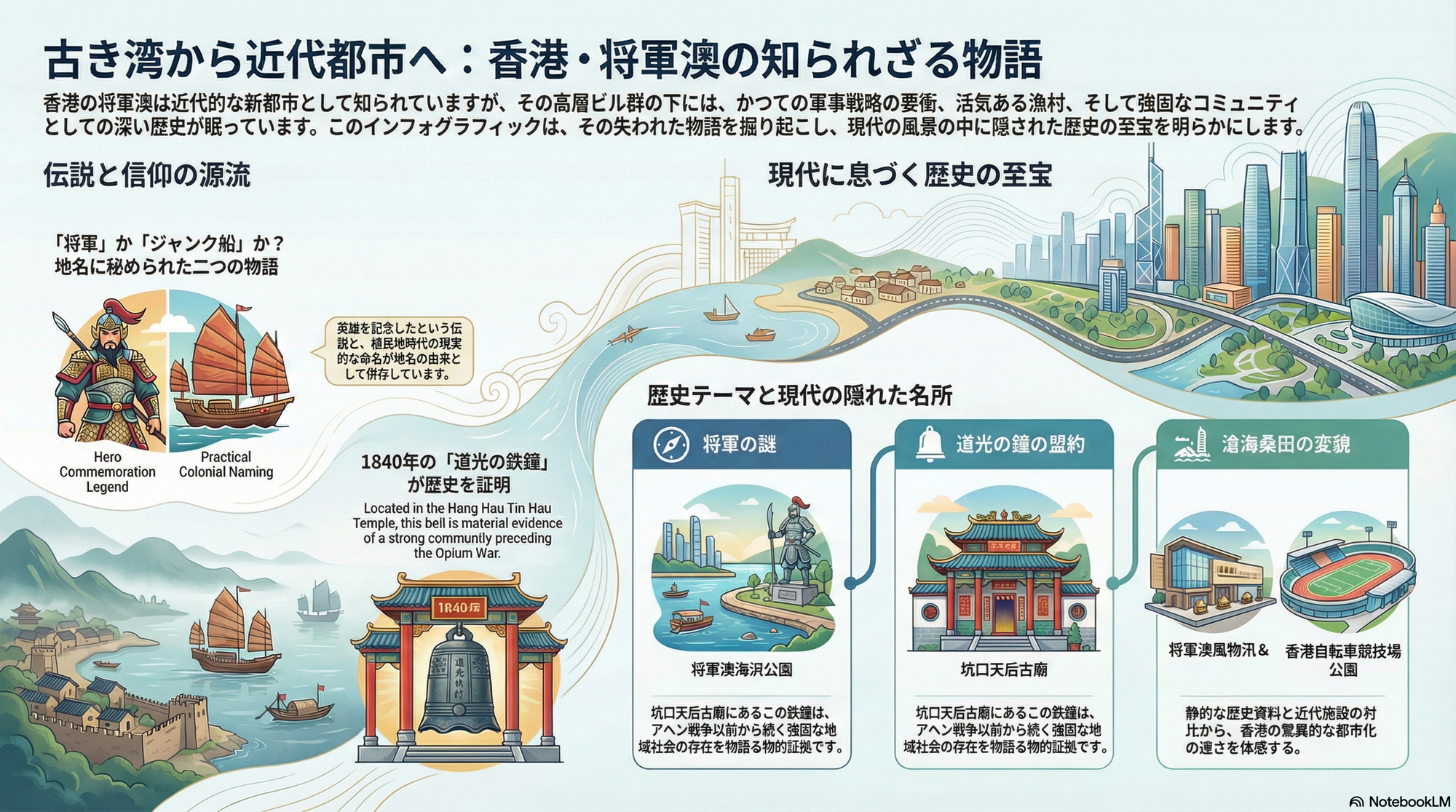 将軍澳の歴史を巡る旅は、香港の発展が「無からの創造」ではなく、古いコミュニティと記憶の上に成り立つ「変容の物語」であることを教えてくれます。それは、逆境に屈しない「強靭さ(resilience)」の物語でもあります。将軍の伝説から、海の民の信仰、そして近代化の波に直面した村人たちの自治に至るまで、この土地の歴史は常に変化への適応と文化的な矜持に貫かれてきました。