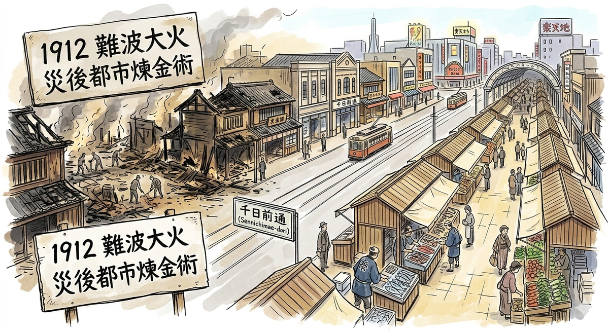 大阪・黒門市場の二百年にわたる歩みを紐解きます。文政年間の起源から消えた「黒い門」、禁断のフグ食を支えた「地下目利き」、難波大火後の都市計画。単なる観光地ではない、職人の技術と商人のレジリエンスが息づく空間の深層へ。歴史都市紀行家が、失われた風景と重層的な文化を専門的視点で綴ります。