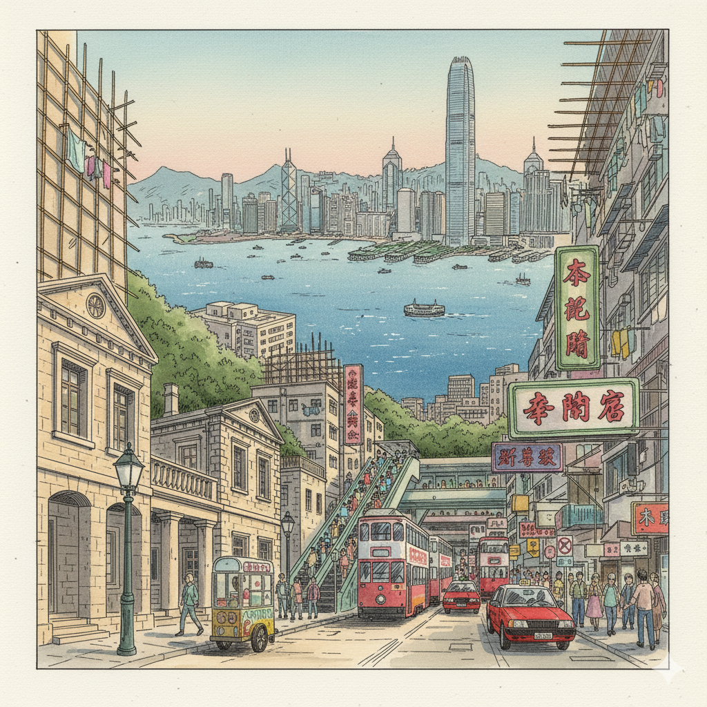 Quando pensamos em Central, Hong Kong, a imagem que nos vem à mente é quase universal: um denso aglomerado de arranha-céus de vidro e aço, o epicentro pulsante de um dos maiores centros financeiros do mundo. No entanto, sob esta fachada de modernidade, esconde-se uma história de constante "luta espacial". Esta zona, o coração administrativo da antiga colónia britânica, a "Cidade de Vitória", foi desde o início moldada por "fronteiras invisíveis" que separavam o poder, as classes e as culturas. É um palimpsesto de conflitos, resiliência e transformação.