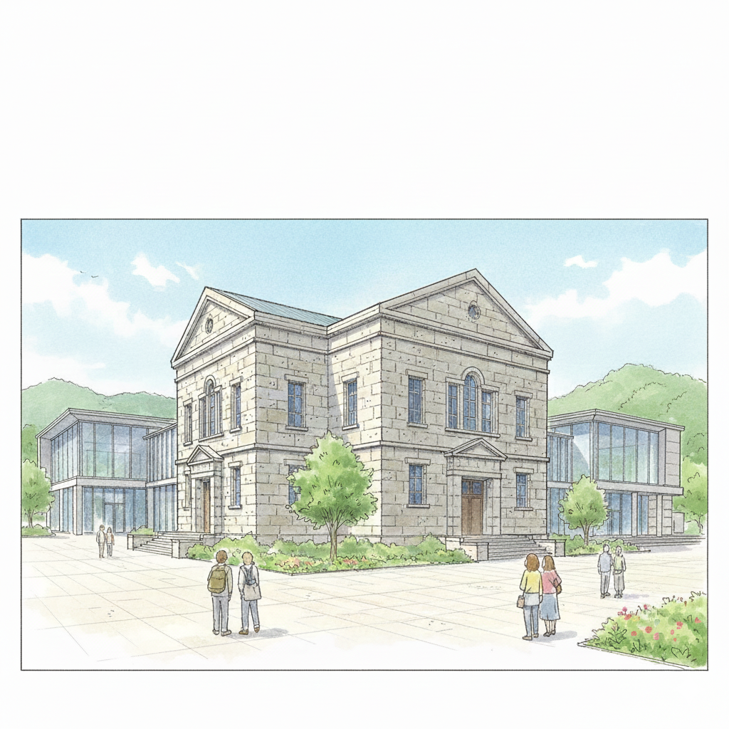 O epicentro deste diálogo é a Igreja Católica de Matsugamine (松峰天主教会). Projetada pelo arquiteto suíço Max Hinder e concluída em 1932, esta igreja é o maior edifício de estilo neorromânico existente construído inteiramente em Pedra de Oya. A sua fusão harmoniosa entre a arquitetura europeia e o material local valeu-lhe a designação de Propriedade Cultural Tangível Registada a Nível Nacional.